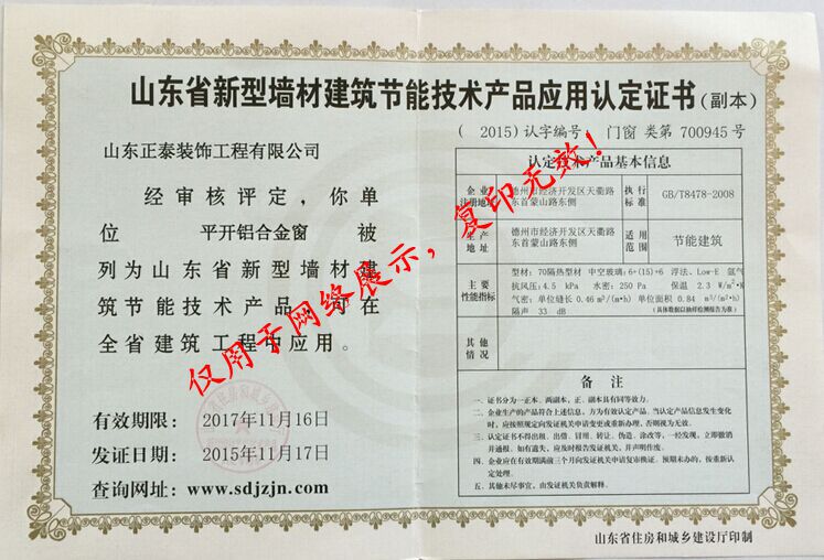 节能认证(铝合金窗)